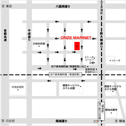 ・地下鉄有楽町線「新富町駅」5番出口より、徒歩1分 ・地下鉄日比谷線「築地駅」3番・4番出口より、徒歩4分 ・首都高速都心環状線新富町出口すぐ! ![]() |