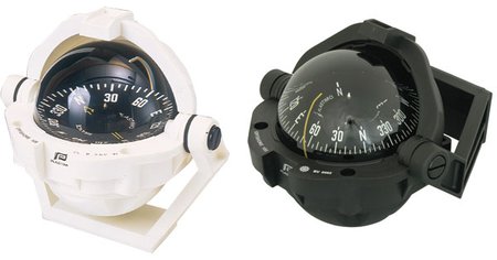 オフショア105、135コンパスにブラケットキットを取り付ければ、写真の様に埋め込みタイプからブラケットタイプに簡単に変更する事ができます。ブラケットタイプにすれば水平でない傾斜のある取り付け面や、垂直な壁面にも取り付けができます。